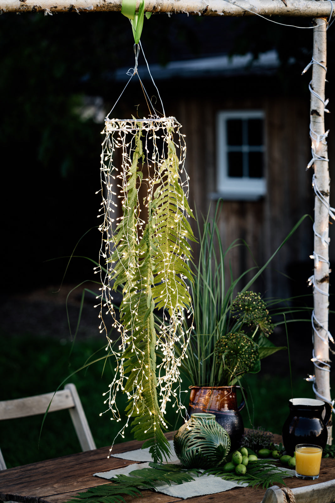 Ring mit LED-Cluster-Vorhang, Ø20cm, 640 LEDS ww, 6 h Timer, dimmbar, Außen-Transformator