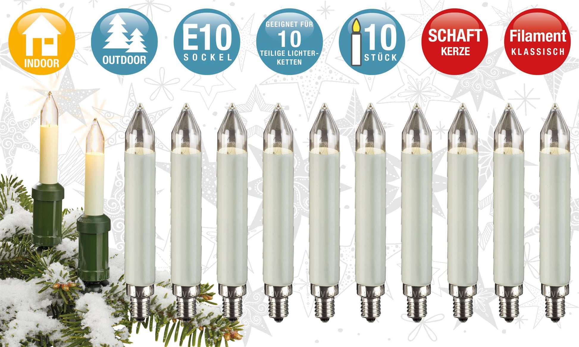 Für die Verwendung in Lichterketten für den Innen- und Außenbereich geeignet.