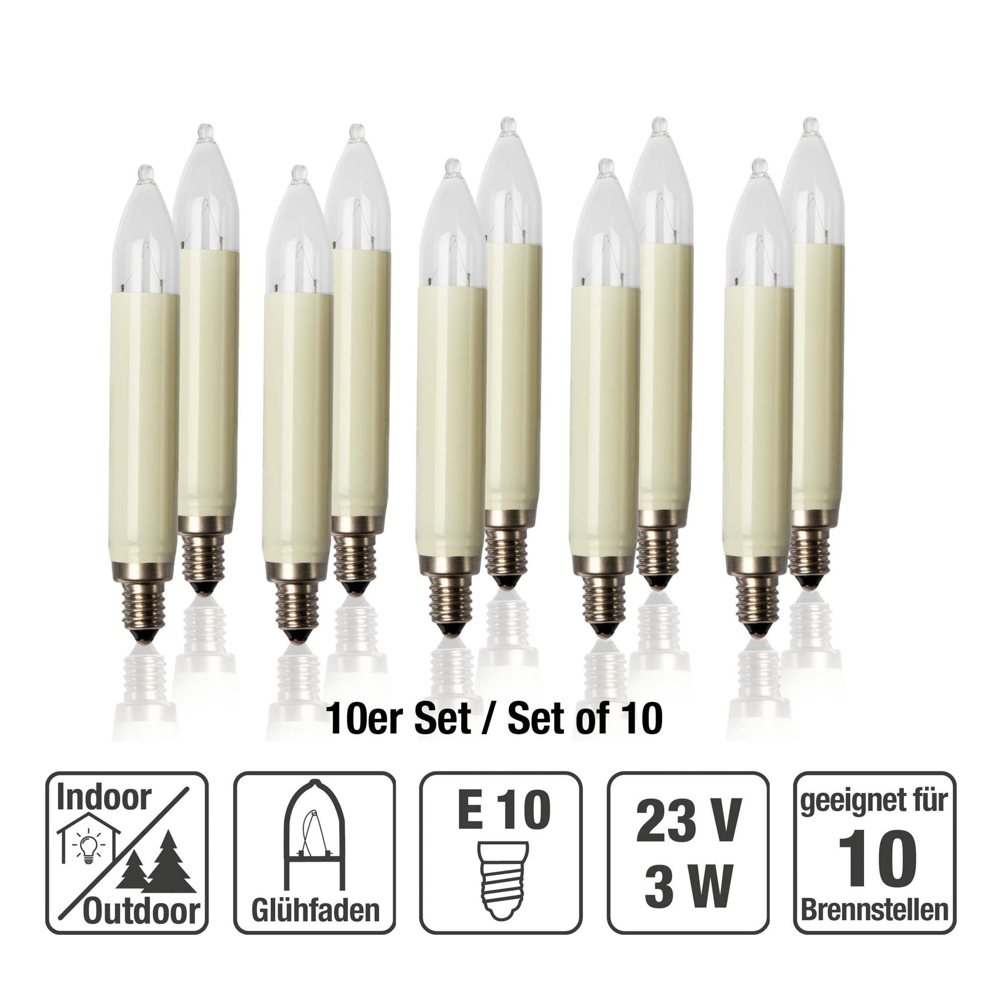 Schaftkerze, 23 V / 3 W, E 10, 10er Schachtel